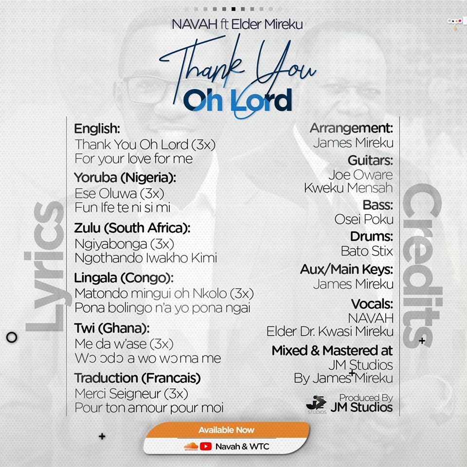 International Ghanaian gospel artiste NAVAH has released his new AWAITED single featuring the legendary Elder Dr. Kwasi Mireku titled ‘THANK YOU OH LORD’.